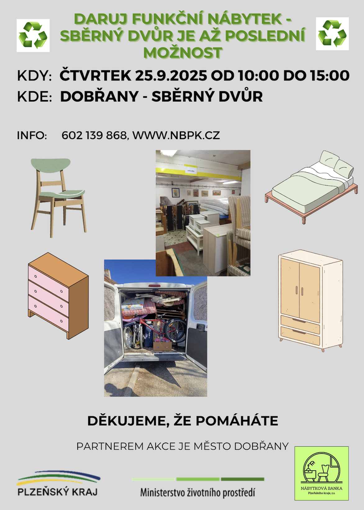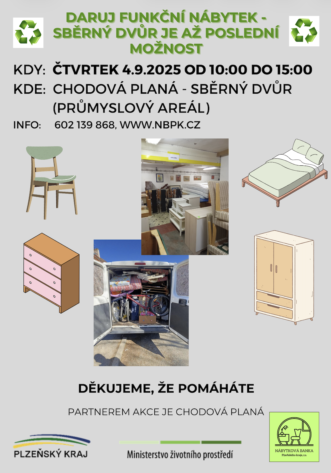 NBPK získává zdarma nepotřebný, ale funkční nábytek a vybavení pro domácnost od dárců.